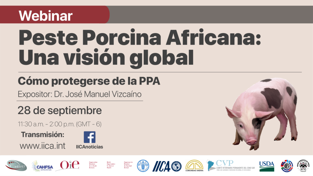 En el marco del Programa Global – Enfermedades Animales Transfronterizas (GF-TADs – por sus siglas en inglés) y a través de su grupo de trabajo interagencial de preparación en prevención y respuesta ante la Peste Porcina Africana (PPA) para América Latina y el Caribe, del cual el CVP es integrante; se realizará el 28 de setiembre de 2021 el primer seminario web donde se desarrollará el tema: “Cómo protegerse de la PPA”.